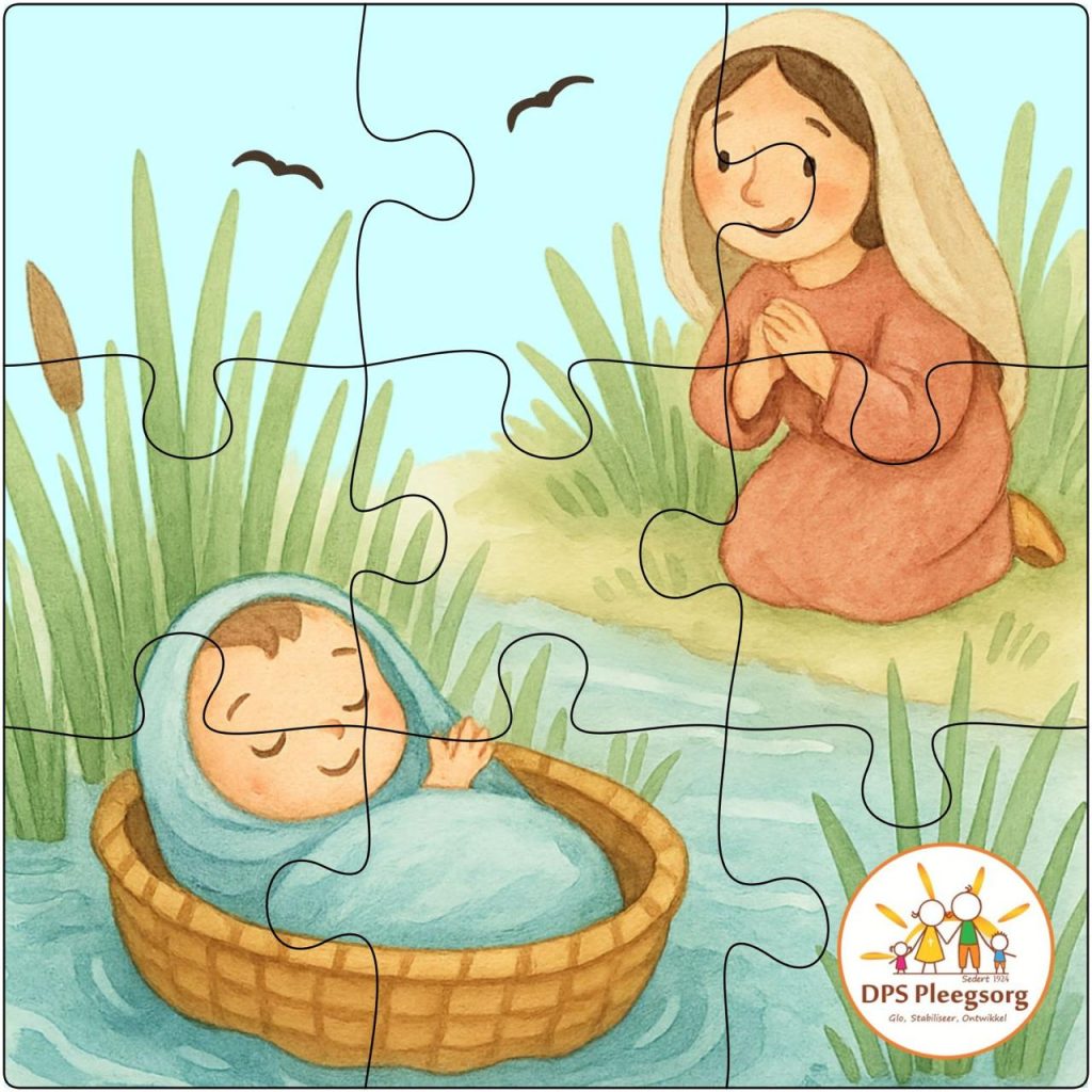 Deel van die spesiale deurkollekte vir die DPS-huise is juis om aan ons kinders deur middel van legkaarte die Bybelse verhale van hoop oor te dra. Hierdie legkaarte beeld verskillende Bybelse verhale uit. Die fokus op verskillende ouderdomsgroepe maak die gebruik van die legkaarte veelsydig. Hieronder is voorbeelde van Moses in die mandjie, weggesteek in die Nylrivier, vir twee ouderdomsgroepe: voorskoolse en laer grade, asook kinders in hoër grade.